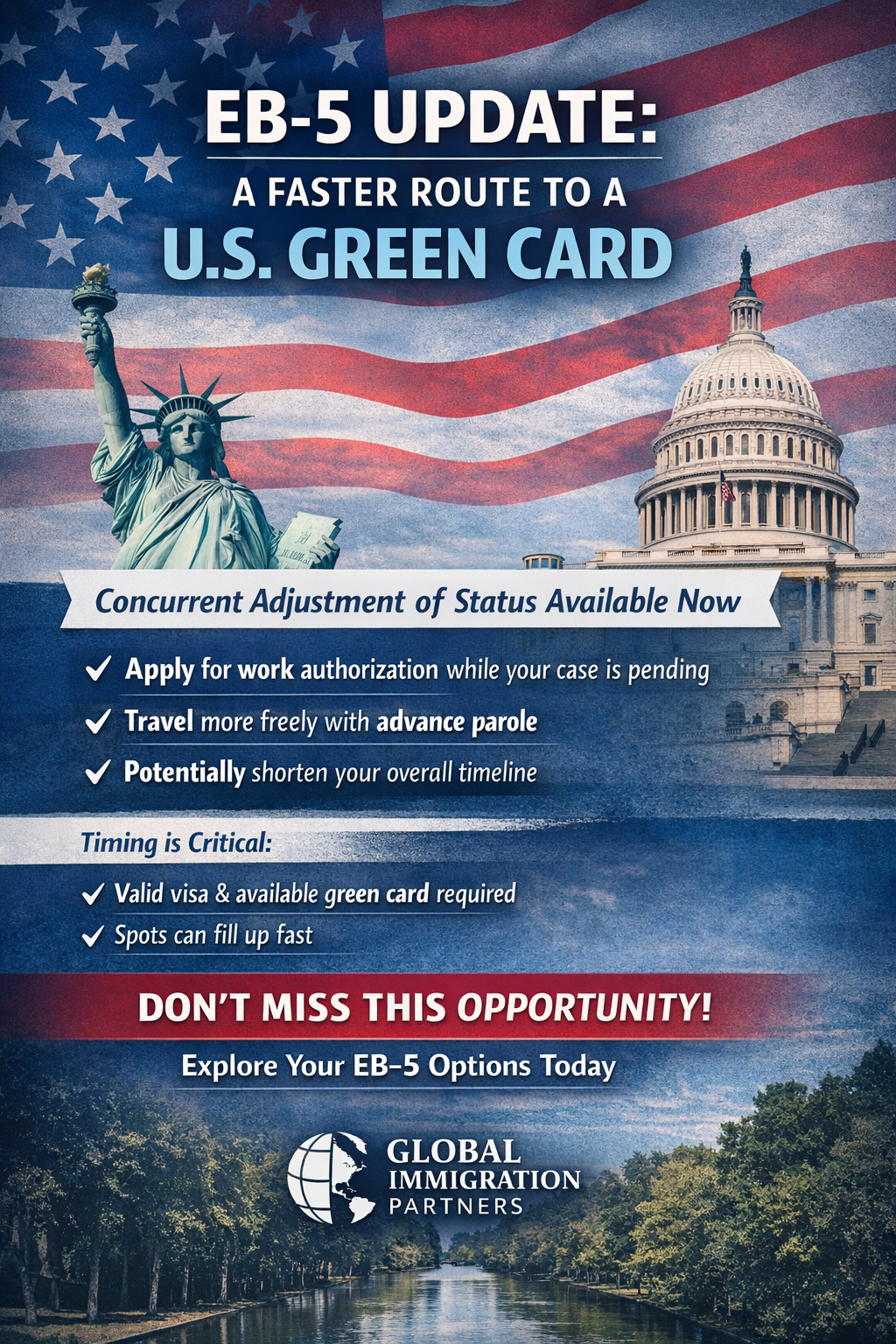 Global Immigration Partners is drawing attention to a significant development in the EB-5 Immigrant Investor Program that is reshaping the pathway to U.S. permanent residency for eligible investors: concurrent adjustment of status.